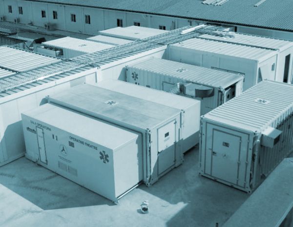 - يتم تثبيت جميع المعدات (الطبية وغير الطبية) على الحاوية وتبقى في نفس الوضع أثناء مرحلتي النقل والتشغيل. بهذه الطريقة، تصبح الحاوية صالحة للعمل في وقت قصير جدًا (حوالي 3 دقائق لوضع الحاوية وتفريغها وفتحها وتشغيلها.