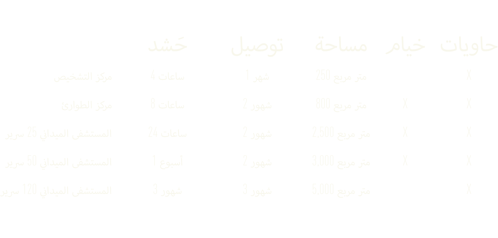 - تخطيط وتصميم المستشفيات الميدانية والتسليم المؤقت